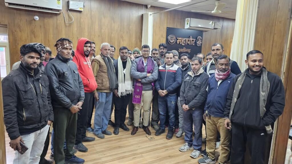 नगर निगम अलीगढ़ में सालों से आउटसोर्स कर्मी के रूप में अपनी सेवाएं दे रहे सामान्य श्रेणी के ड्राइवर मिस्त्री हेल्पर आदि के वेतन में वृद्धि करने पर नगर निगम ड्राइवर संघ के अध्यक्ष शेखर जीवन और महामंत्री उदय सिंह के नेतृत्व में अनेकों ड्राइवर और सामान्य श्रेणी कर्मचारियों ने महापौर के कैंप कार्यालय पहुंचकर महापौर श्री प्रशांत सिंघल के नेतृत्व वाले समस्त पार्षदों व नगर आयुक्त विनोद कुमार का सम्मान करते हुए आभार जताया।