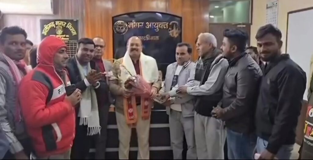 नगर निगम आउटसोर्स कर्मचारियों ने वेतन वृद्धि पर महापौर और नगर आयुक्त का किया सम्मान