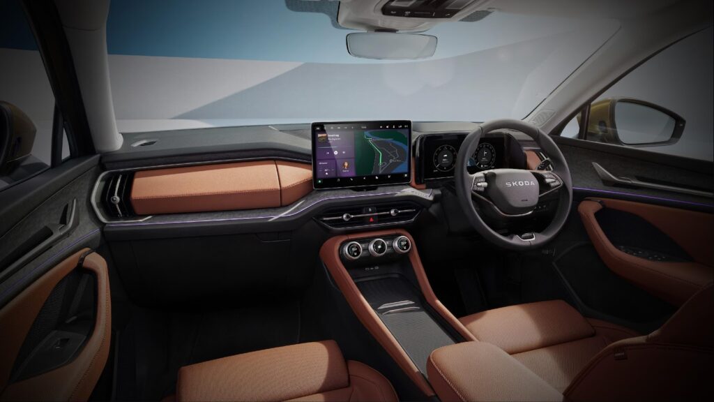नई स्कोडा कोडिएक ने सर्वोच्च विलासिता की अपनी परंपरा को जारी रखा है, जिसमें दो अलग-अलग आंतरिक थीम हैं: स्पोर्टलाइन वेरिएंट के लिए ऑल-ब्लैक स्पोर्टी डेकोर और सेलेक्ट एलएंडके ट्रिम में प्रीमियम कोनिक लेदर अपहोल्स्ट्री। केबिन की तकनीक और सुविधा को बढ़ाते हुए, इसमें अब 32.77 सेमी इंफोटेनमेंट सिस्टम है, साथ ही मल्टी-फंक्शन स्मार्ट डायल हैं जो स्पर्शनीय रोटरी नॉब और स्क्रीन के साथ आते हैं, जो एचवीएसी, सीट वेंटिलेशन, ऑडियो सेटिंग और ड्राइव मोड पर सहज नियंत्रण प्रदान करते हैं। एर्गोनोमिक सुधारों में स्टीयरिंग व्हील के पीछे एक नया गियर-चयनकर्ता शामिल है, जो बेहतर पहुंच प्रदान करता है, और पीछे की सीट के यात्रियों के लिए एक टैबलेट होल्डर है, जो उनकी सुविधा को बढ़ाता है।