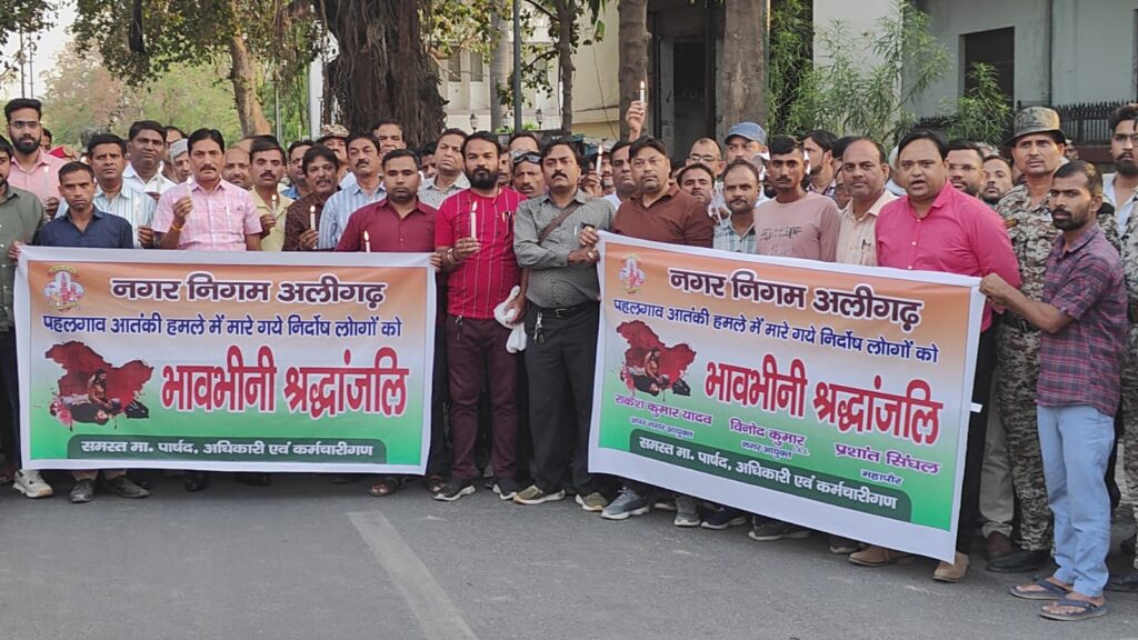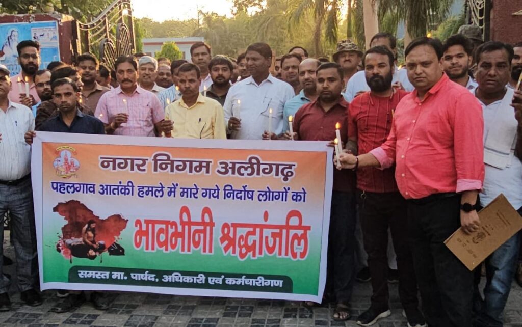 अलीगढ़ नगर निगम के पार्षद, अधिकारी और कर्मचारियों ने आज पहलगाम में शहीद हुए भारतीय नागरिकों को श्रद्धांजलि देने के लिए एक कैंडल मार्च निकाला। इस मार्च में शामिल लोगों ने पाकिस्तान और आतंकवाद के खिलाफ नारे लगाए, जैसे कि पाकिस्तान मुर्दाबाद और आतंकवाद मुर्दाबाद।