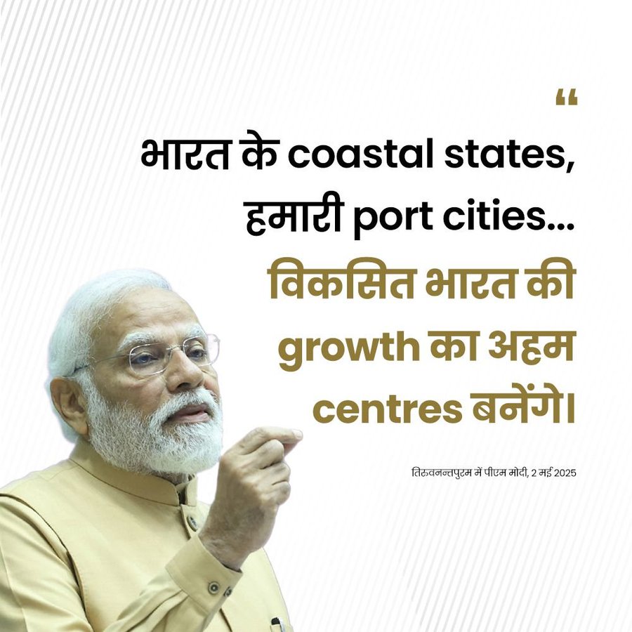 प्रधानमंत्री ने याद दिलाया कि औपनिवेशिक युग से पहले भारत समुद्री शक्ति के रूप में समृद्ध था। केरल ने इस समृद्धि में महत्वपूर्ण भूमिका निभाई थी। उन्होंने कहा कि केरल के बंदरगाहों से भारत ने विश्व के कई देशों से व्यापारिक रिश्ते बनाए थे। आज भारत सरकार उसी समुद्री सामर्थ्य को पुनः स्थापित करने के लिए कृतसंकल्प है। उन्होंने कहा कि भारत के तटीय राज्य और बंदरगाह शहर देश के आर्थिक विकास में अग्रणी भूमिका निभाएंगे।