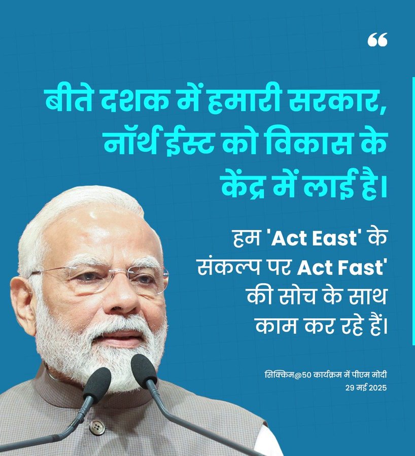 प्रधानमंत्री श्री मोदी ने जोर देते हुए कहा कि 2014 से उनकी सरकार ने सबका साथ, सबका विकास के सिद्धांत का पालन किया है। उन्होंने कहा कि विकसित भारत के लिए संतुलित विकास की आवश्यकता है, ताकि यह सुनिश्चित हो सके कि कोई भी क्षेत्र विकास में पीछे न छूटे। प्रधानमंत्री ने कहा, “भारत के हर राज्य और क्षेत्र की अपनी अनूठी ताकत है। इस दृष्टिकोण को ध्यान में रखते हुए सरकार ने पिछले दशक में पूर्वोत्तर को विकास के केंद्र में रखा है।” उन्होंने कहा, “सरकार ‘एक्ट ईस्ट’ नीति को ‘एक्ट फास्ट’ की भावना के साथ आगे बढ़ा रही है।” हाल ही में दिल्ली में आयोजित पूर्वोत्तर निवेश शिखर सम्मेलन को याद करते हुए प्रधानमंत्री ने कहा कि इस कार्यक्रम में प्रमुख उद्योगपतियों और प्रमुख निवेशकों ने भाग लिया, जिन्होंने सिक्किम सहित पूरे पूर्वोत्तर में महत्वपूर्ण निवेश की घोषणा की। उन्होंने कहा कि आने वाले वर्षों में इससे सिक्किम और पूर्वोत्तर क्षेत्र के युवाओं के लिए रोजगार के कई अवसर पैदा होंगे।