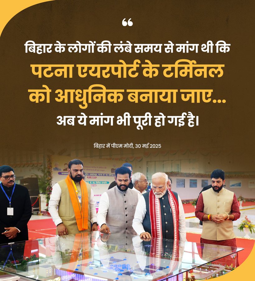 इस बात पर जोर देते हुए कि सुरक्षा और शांति विकास के नए रास्ते खोलती है, प्रधानमंत्री ने इस बात पर प्रकाश डाला कि नीतीश कुमार के नेतृत्व में ‘जंगल राज’ सरकार के जाने के बाद बिहार समृद्धि के पथ पर आगे बढ़ रहा है। उन्होंने कहा कि टूटी हुई सड़कें, खस्ताहाल रेलवे और सीमित उड़ान कनेक्टिविटी के दिन अब अतीत की बात हो गए हैं। उन्होंने कहा कि बिहार में कभी केवल एक हवाई अड्डा था – पटना हवाई अड्डा – लेकिन आज, दरभंगा हवाई अड्डा कार्यशील है, जो दिल्ली, मुंबई और बेंगलुरु जैसे शहरों के लिए सीधी उड़ानें प्रदान करता है, प्रधानमंत्री ने पटना हवाई अड्डे के टर्मिनल के आधुनिकीकरण के लिए बिहार के लोगों की लंबे समय से चली आ रही मांग को स्वीकार किया और पुष्टि की कि यह मांग अब पूरी हो गई है। उन्होंने इस बात पर प्रकाश डाला कि कल शाम उन्हें पटना हवाई अड्डे के नए टर्मिनल भवन का उद्घाटन करने का सौभाग्य मिला, जो अब एक करोड़ यात्रियों को संभालने में सक्षम है। उन्होंने यह भी कहा कि बिहटा हवाई अड्डे में 1,400 करोड़ रुपये का निवेश किया जा रहा है।