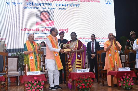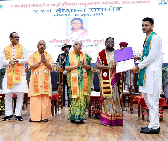 केंद्रीय कृषि मंत्री श्री शिवराज सिंह ने कहा कि भारत कृषि प्रधान देश है, पशुपालन के बिना कृषि की कल्पना अधूरी है। पशुपालन के बिना खेती लाभ का धंधा नहीं बन सकती। उन्होंने छात्र-छात्राओं से कहा कि ये दीक्षांत समारोह नहीं, बल्कि सेवा के संकल्प का शुभारंभ है। यह केवल डिग्री नहीं बल्कि देश, समाज, किसान और पशुपालक कल्याण की जिम्मेदारी है। उन्होंने स्वामी विवेकानंद के उद्धरणों के माध्यम से छात्रों को प्रेरित करते हुए कहा कि आप अकेले नहीं हैं, आप राष्ट्र के भविष्य हैं। आप जो सोचेंगे, वही बनेंगे। देश को ऐसे वैज्ञानिकों की जरूरत है, जो ज्ञान को सेवा में बदलें। समारोह में 576 छात्रों को राष्ट्रपति द्रौपदी मुर्मू द्वारा उपाधियां और 24 को पदक प्रदान किए गए। श्रीमती आनंदीबेन पटेल, श्री संतोष गंगवार, श्री योगी आदित्यनाथ और अन्य अतिथियों ने भी विचार व्यक्त किए।