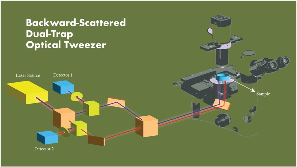 पीछे की ओर बिखरे प्रकाश का उपयोग करते हुए नया डुअल-ट्रैप ऑप्टिकल ट्वीजर सेट-अप