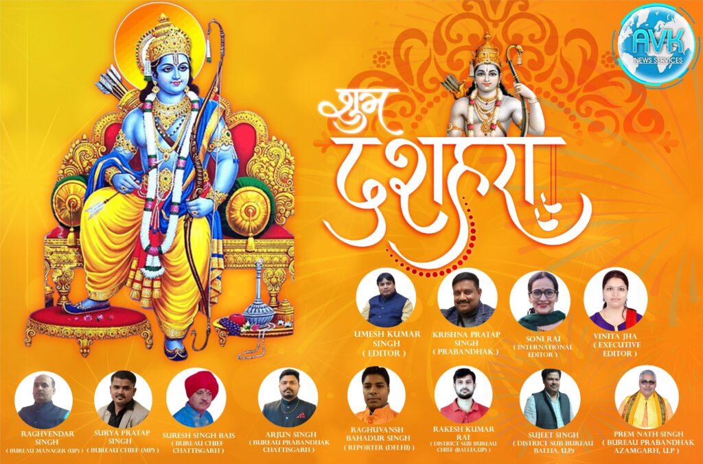 आप सभी को और आपके परिवार को विजयादशमी को एवीके न्यूज सर्विस परिवार की तरफ से हार्दिक शुभकामनाएँ एवं जीवन संग्राम में सदैव विजयी होने की मंगलकामनाएँ!