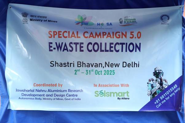 नई दिल्ली स्थित शास्त्री भवन में आयोजित एक विशेष कार्यक्रम में सचिव (खान) श्री पीयूष गोयल ने इस राष्ट्रव्यापी ई-कचरा संग्रहण अभियान का शुभारंभ किया। खान मंत्रालय द्वारा संचालित यह पहल इसके स्वायत्त निकाय जवाहरलाल नेहरू एल्युमीनियम अनुसंधान विकास एवं डिजाइन केंद्र (JNARDDC) के सहयोग से चलाई जा रही है। अभियान का दायरा केवल राजधानी तक सीमित नहीं है, बल्कि नागपुर और हैदराबाद जैसे प्रमुख नोडल केंद्रों सहित देशभर के केंद्रीय और क्षेत्रीय कार्यालयों, सार्वजनिक क्षेत्र के उपक्रमों, स्वायत्त संस्थानों और इकाइयों तक विस्तृत है।