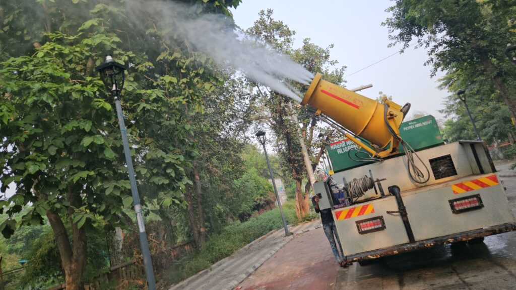 नगर आयुक्त प्रेम प्रकाश मीणा ने बताया कि वर्तमान वायु प्रदूषण के गुब्बार को कम करने के लिए नगर निगम की सभी मशीनों को ग्राउंड जीरो पर तत्काल तैनात किया गया है। नगर निगम की एक एंटी स्मोक गन, 2 रोड स्वपिंग मशीन 8 स्प्रे मशीन 12 पानी के टैंकर 3 जेटिंग मशीनों से शहर के प्रमुख अलीगढ़ स्मार्ट सिटी रोड, दीवानी कचहरी, जीटी रोड, एटा चुंगी,सूत मिल,क्वारसी बाईपास,जमालपुर शमशाद मार्केट, रसलगंज चौराहा,माल गोदाम रोड,आगरा रोड पर पेड़ पौधों की धुलाई डिवाइडरों की धुलाई और सड़क की धुलाई करते हुए पुरानी जमा धूल को हटाने के लिए अगले 7 दिनों तक लगातार विशेष वायु प्रदूषण बचाओ अभियान शुरू किया गया है।