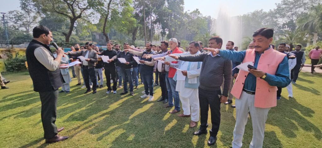 26 नवम्बर को संविधान दिवस के अवसर पर नगर आयुक्त प्रेम प्रकाश मीणा के नेतृत्व में सेवा भवन में भव्य संविधान की उद्देशिका का पालन करने व हमारा संविधान हमारे स्वाभिमान की शपथ दिलाते हुए नगर निगम के सभी अधिकारी कर्मचारियों को शुभकामनाएं दी। नगर आयुक्त ने कहा हमारा संविधान हमारे देश की आत्मा है, और हमें इसकी उद्देशिका का पालन करना चाहिए।