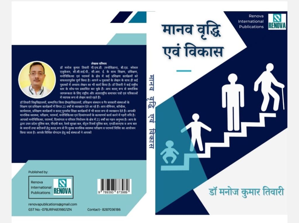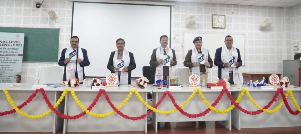 वाराणसी: सेमिनार हॉल, साइंस फैकल्टी, काशी हिंदू विश्वविद्यालय में नई सुबह इंस्टिट्यूट ऑफ़ मेंटल हेल्थ एण्ड बिहेवियरल साइंसेज व्दारा आयोजित तीन दिवसीय राष्ट्रीय सेमिनार/सतत पुनर्वास शिक्षा कार्यक्रम के शुभारम्भ कार्यक्रम में प्रसिद्ध लेखक, शिक्षाविद एवं मनोवैज्ञानिक डॉ. मनोज कुमार तिवारी, वरिष्ठ परामर्शदाता, एआरटी सेंटर, एसएस हॉस्पिटल, आईएमएस, बीएचयू द्वारा लिखित पुस्तक मानव वृद्धि एवं विकास का विमोचन माननीय श्री आलोक अग्निहोत्री अपर जिला जज वाराणसी व सचिव जिला विधिक सेवा प्राधिकरण वाराणसी, श्री राधा कृष्ण मिश्रा अधीक्षक केंद्रीय कारागार वाराणसी, प्रो. राजीव बाटला डिपार्टमेंट ऑफ़ जिओ फिजिक्स बीएचयू व प्रसिद्ध मनोचिकित्सक डॉ अजय तिवारी ने संयुक्त रूप से किया। डॉ. मनोज कुमार तिवारी को डॉ अजय तिवारी ने स्मृति चिन्ह, अंगवस्त्र व प्रशस्ति-पत्र प्रदान कर सम्मानित किया।