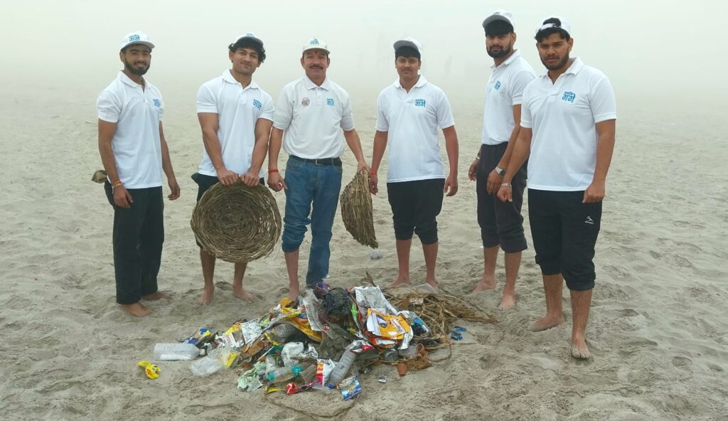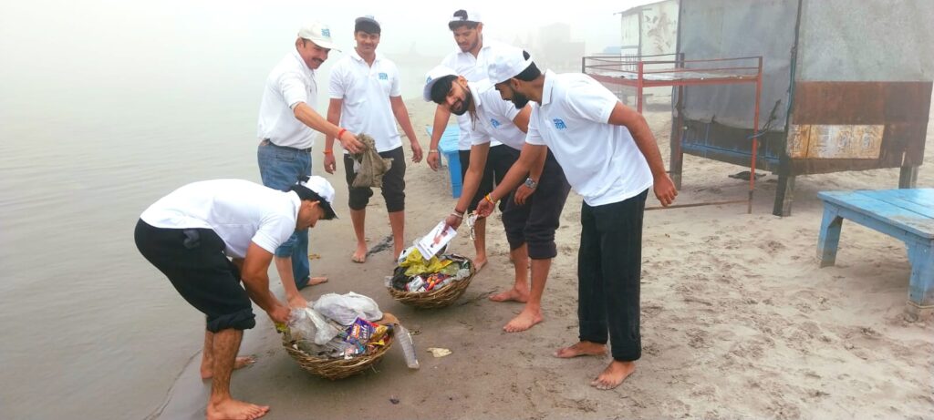 ” नमामि गंगे के स्वयं सेवकों ने गंगा पार रेती पर की स्वच्छता “