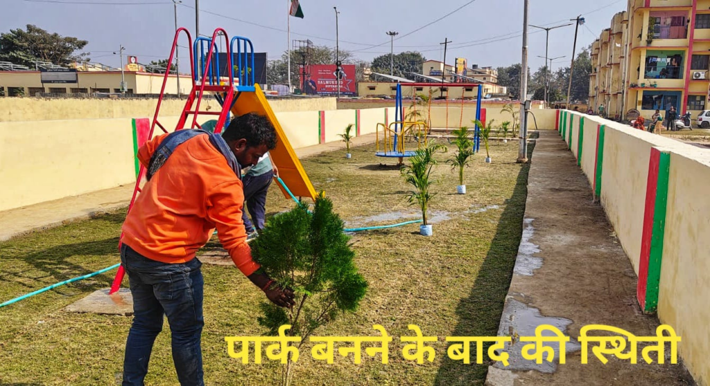वाराणसी: मंडल रेल प्रबंधक, वाराणसी श्री आशीष जैन की प्रेरणा से इंजीनियरिंग विभाग द्वारा वाराणसी मंडल के छपरा स्टेशन के निकट कृष्णानगर रेलवे कॉलोनी में खाली पड़े भूमि की व्यापक साफ-सफाई कर सजावटी पौधों का रोपण कर बच्चों के पार्क का स्वरूप दिया गया है।