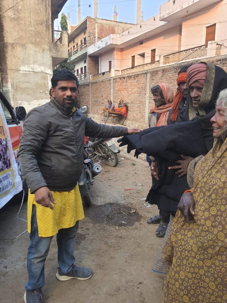 वाराणसी। कड़ाके की ठंड व शीतलहर को देखते हुए समाज सेवा के क्षेत्र में सक्रिय महामना परिवार द्वारा संचालित महामना सेवा समिति ने मकर संक्रांति के पावन अवसर पर एक सराहनीय पहल की। समिति के सदस्यों ने आपसी सहयोग से छित्तूपुर ग्राम सभा के मलिन बस्ती में जरूरतमंदों को कंबल व जूतों का वितरण किया। धार्मिक मान्यताओं के अनुसार मकर संक्रांति का दिन दान-पुण्य व परोपकार के लिए सर्वोत्तम माना जाता है। सूर्य के उत्तरायण होने के इस उत्सव पर नर सेवा को ही नारायण सेवा मानते हुए समिति ने अभावग्रस्तों की मदद का संकल्प लिया। वाराणसी में बढ़ रही ठंड के बीच मलिन बस्ती के निवासी संसाधनों की कमी से जूझ रहे थे। महामना सेवा समिति ने इस स्थिति को समझते हुए यहाँ राहत सामग्री वितरण का कार्यक्रम आयोजित किया। कार्यक्रम में 186 लोगों को कम्बल एवं जूता का वितरण किया गया। कड़ाके की ठंड में कंबल और जूते पाकर बस्ती के बुजुर्गों और बच्चों के चेहरे खिल उठे।
