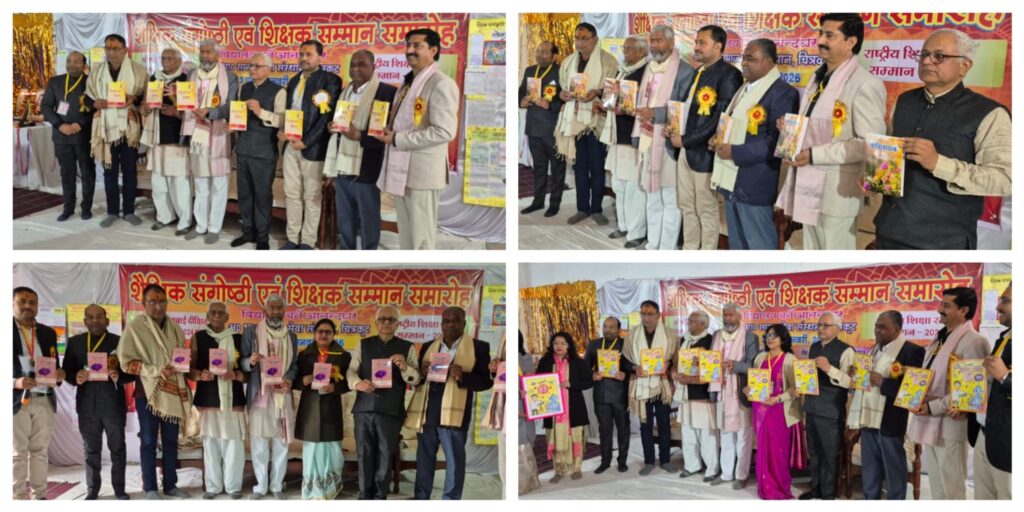 चित्रकूट। चित्रकूट में आयोजित शैक्षिक संवाद मंच के विशिष्ट समारोह में साहित्य और शिक्षा के संगम की एक अनूठी झलक देखने को मिली। इस अवसर पर वरिष्ठ साहित्यकार एवं शिक्षक प्रमोद दीक्षित ‘मलय’ द्वारा लिखित पुस्तकों ‘विद्यालय बनें आनंदघर’ और ‘धरा गगन के बीच’ सहित कुल सात महत्वपूर्ण कृतियों का भव्य विमोचन किया गया। कार्यक्रम में मुख्य अतिथि के रूप में पद्मश्री उमाशंकर पाण्डेय, ‘पाठा के गांधी’ गोपाल भाई, डायट मंदसौर के वरिष्ठ प्रवक्ता डॉ. प्रमोद कुमार सेठिया और उत्तराखंड के डॉ. सुरेन्द्र कुमार आर्यन उपस्थित रहे। इस गरिमामय समारोह में देश के विभिन्न राज्यों से आए अर्धशताधिक शिक्षकों और साहित्यकारों ने अपनी उपस्थिति दर्ज कराई।