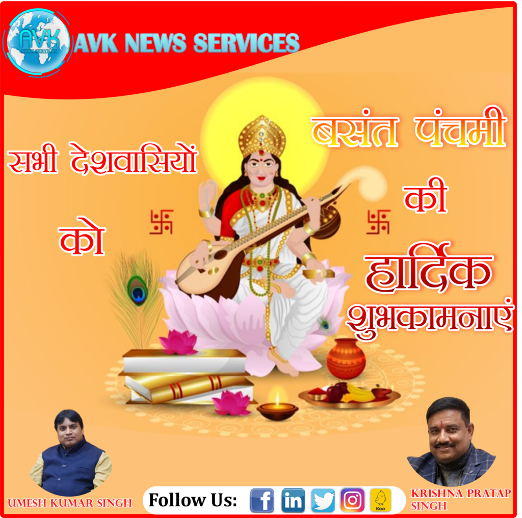 आधुनिक वैश्विक कल्याण संस्थान (ट्रस्ट) और एवीके न्यूज़ सर्विस की ओर से आप सभी को ज्ञान, विद्या, कला और संस्कारों के महापर्व वसंत पंचमी की हार्दिक शुभकामनाएँ।