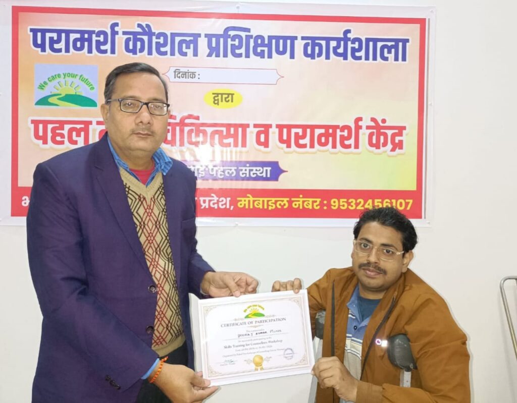 वाराणसी : वर्तमान समय में सामाज, पारिवार, व्यवसाय, शिक्षा सभी क्षेत्रों में तेजी से हो रहे परिवर्तन, व्यक्ति की बढ़ रही अपेक्षाएं, परिवार व समाज द्वारा क्षमता से अधिक आशा रखने, उच्च प्रतिस्पर्धा, जीवनशैली में परिवर्तन के कारण समाज के हर उम्र व वर्ग के व्यक्तियों में मनोवैज्ञानिक समस्याएं बढ़ रही हैं, जिसके प्रबंधन के लिए मनोवैज्ञानिक परामर्श की नितांत आवश्यकता होती है अन्यथा एक समय के बाद मनोवैज्ञानिक समस्याएं मानसिक बीमारी में परिवर्तित हो जाती हैं। युक्त बातें पहल चिकित्सा एवं परामर्श केंद्र परामर्श केंद्र, भट्टी, लोहता, वाराणसी द्वारा आयोजित सात दिवसीय परामर्श कौशल प्रशिक्षण कार्यशाला के समापन व प्रमाण पत्र वितरण समारोह में डॉ मनोज तिवारी वरिष्ठ परामर्शदाता, एआरटीसी, एस एस हॉस्पिटल, आईएमएस बीएचयू ने कही। प्रशिक्षण सफलतापूर्वक पूर्ण करने वाले सहभागियों को प्रमाण पत्र प्रदान किया गया। कार्यक्रम के आयोजन में योग प्रशिक्षक मनीष कुमार पांडेय, अखिलेश कुमार, विशेष तिवारी का सराहनीय योगदान रहा। कार्यक्रम का संचालन सुषमा यादव तथा अतिथियों का धन्यवाद ज्ञापन उज्ज्वला ने किया।