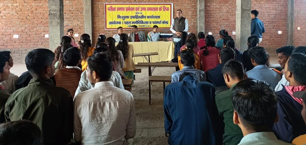 वाराणसी : निःशुल्क परीक्षा तनाव प्रबंधन कार्यशाला का आयोजन ग्रामीण क्षेत्र के भट्ठी, लोहता, वाराणसी में पहल मनोचिकित्सा व परामर्श केंद्र द्वारा आयोजित किया गया जिसमें विशेषज्ञ वक्ता के रूप में बोलते हुए मनोचिकित्सक डॉ मनोज कुमार तिवारी वरिष्ठ परामर्शदाता, एआरटीसी, एसएस हॉस्पिटल, आईएमएस, बीएचयू ने कहा कि छात्रों को अभी परीक्षा की तैयारी पर ध्यान केंद्रित करना चाहिए कि वे बचे हुए समय का कैसे सर्वोत्तम उपयोग कर सकते हैं उन्होंने कहा कि समय सारिणी बनाकर तैयारी करें, दिनचर्या नियमित रखें, संतुलित एवं पौष्टिक आहार लें, 6 -7 घंटे गुणवत्तापूर्ण नींद लें, अध्ययन करते समय प्रत्येक घंटे पर 5 मिनट का विश्राम लें, लिखकर अभ्यास करें, तनाव हो तो अपने अभिभावक व शिक्षक से बात करें, थोडा समय खेल व मनोरंजन के लिए निकालें, नकारात्मक बातों तथा परीक्षा के परिणाम के बारे में न सोचें।