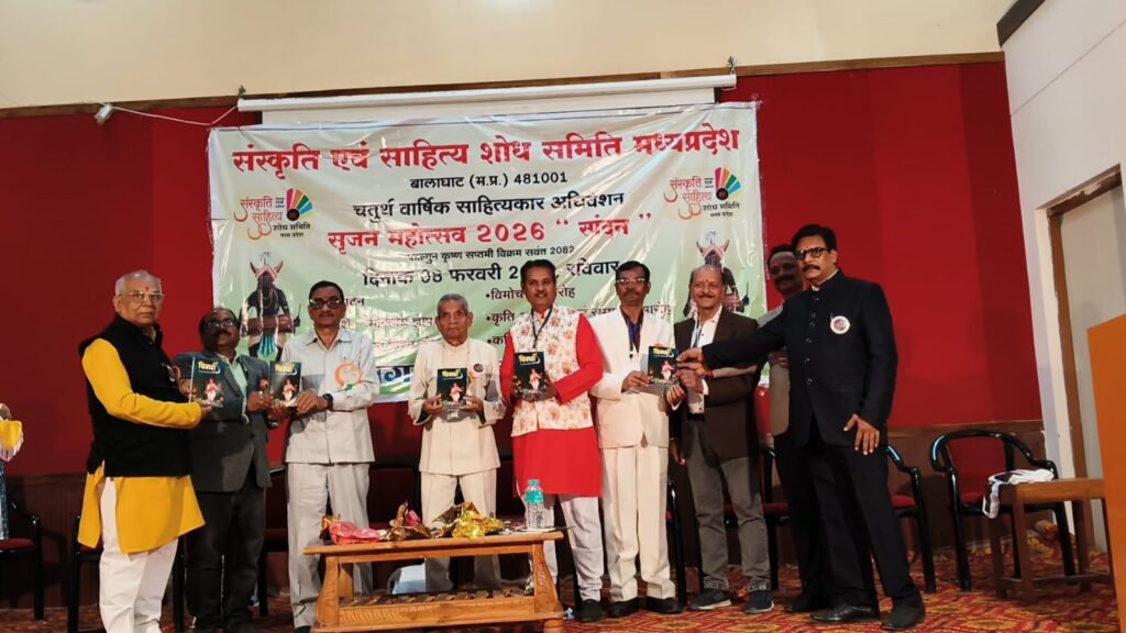 इस अवसर पर आयोजित विमर्श विषय भारतीय ज्ञान परम्परा और विश्वबोध पर चर्चा की गई। इसके अतिरिक्त कृति अलंकरण अंतर्गत-कविता संग्रह एक नई सुबह का सूरज ,कवि गोविंद पाल भिलाई को स्व श्री भगवंत राव आड़े स्मृति काव्य कुमुदिनी अलंकरण, गोपाल देव नीरद के ग़ज़ल संग्रह – शतरंज के घोड़े को स्व चित्रसेन राणा जी स्मृति सफ़ीर- ए- ग़ज़ल अलंकरण, डॉ प्रदीप कुमार शर्मा रायपुर छ ग के बाल कहानी संग्रह संस्कारों की पाठ शाला ,डॉ. नीरज श्रीवास्तव अनूपपुर के प्रबन्ध काव्य -नर्मदा के मेघ को, स्व रामप्रसाद कसार ‘विशारद” स्मृति कबीर गौरव अलंकरण, अभिधा शर्मा भिलाई के उपन्यास ‘कैनवास पर बिखरे यादों के रंग” को स्व रुकमन बाई राणा स्मृति उपन्यास गौरव अलंकरण, प्रदान किया गया। स्व स्नेहलता जैन स्मृति “काव्य महारथी सम्मान-2026 भोपाल से पधारे डॉ शरद मिश्र को, तथा स्व श्रीमती फूलचंद भारती एवम रामवती जी भारती स्मृति साहित्य शिरोमणि सम्मान जबलपुर से पधारे डॉ कौशल दुबे जी को प्रदान किया गया। समिति द्वारा आयोजित पत्रकारिता के क्षेत्र में विशिष्ट योगदान हेतु कलम वीर सम्मान- 2026 – बालाघाट के वरिष्ठ पत्रकार सोहन वैद्य, अरविंद अग्निहोत्री को एवम श्रेष्ठ पत्रकारिता हेतु सुनील कोरे को प्रदान किया गया। साहित्य, शिक्षा एवम समाज सेवा के क्षेत्र में 25 वर्षों से विशेष योगदान हेतु- “आजीवन उपलब्धि सम्माम” लाइफ टाइम अचीवमेंट अवार्ड-2026, समिति के संस्थापक एवम महा सचिव अशोक सिहांसने “असीम” को साहित्य एवम समाज सेवा में विशिष्ठ सेवाओं हेतु प्रदान किया गया।इसके अतिरिक्त, दिल्ली, बिहार, उत्तर प्रदेश, छत्तीसगढ़, महाराष्ट्र, राजस्थान, एवम मध्यप्रदेश के विभिन्न स्थलों से पधारे साहित्यकारों को सम्मानित किया गया।साहित्यकार अधिवेशन के चतुर्थ व अंतिम सत्र में शाम 4.00 बजे से कवि समागम अंतर्गत राज्यों से पधारे एवं जिले के कवियों द्वारा सरस कविता पाठ किया गया। इस सत्र में विशिष्ट अतिथि के रूप में बिलासपुर से पधारे सुरेश सिंह बैस शाश्वत की उपस्थिति में कवि सम्मेलन का कार्यक्रम आयोजित हुआ।समिति की ओर से आभार प्रदर्शन सुभाष गुप्ता ने किया। गया तो समस्त अधिवेशन के समस्त कार्यक्रम चार सत्रों में संपन्न हुई जिसमें प्रथम सत्र प्रात: 9:00 से प्रारंभ हुआ जिसमें भारतीय ज्ञान परंपरा व विश्व बोध विषय पर सारगर्भित चर्चा की गई। शाम 7.00 बजे वन्दे मातरम राष्ट्रगान के साथ कार्यक्रम का समापन हुआ। एवीके न्यूज सर्विस