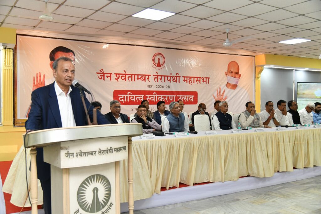 जैन श्वेताम्बर तेरापंथ धर्मसंघ की ‘संस्था शिरोमणि’ जैन श्वेताम्बर तेरापंथी महासभा के सत्र 2026-28 के नवनिर्वाचित पदाधिकारियों का दायित्व स्वीकरण उत्सव महासभा प्रधान कार्यालय, कोलकाता में गरिमामय एवं भावपूर्ण वातावरण में संपन्न हुआ। दोपहर में जैन संस्कार विधि से पूजन-अर्चन के उपरान्त शुभ मुहूर्त में नवनिर्वाचित पदाधिकारियों ने महासभा कार्यालय में प्रवेश कर विधिवत दायित्व ग्रहण किया। निवर्तमान अध्यक्ष श्री मनसुखलाल सेठिया ने नवनिर्वाचित अध्यक्ष श्री महेन्द्र नाहटा को दायित्व हस्तांतरित किया। इस अवसर पर महासभा के पाँच पूर्व अध्यक्ष एवं पाँच पूर्व प्रधान न्यासी विशेष रूप से उपस्थित रहे।