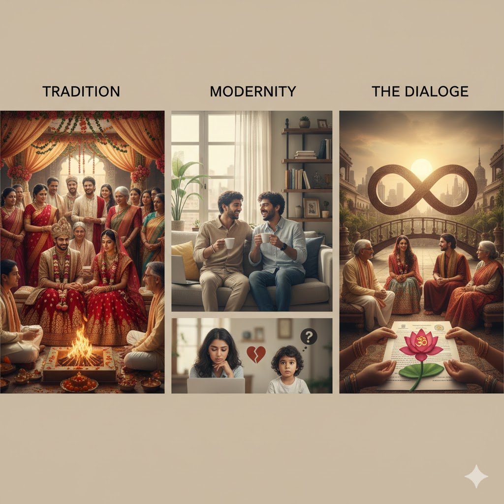 भारत, जहाँ विवाह को केवल दो व्यक्तियों का मिलन नहीं बल्कि दो परिवारों का ‘पवित्र बंधन’ और एक ‘धार्मिक संस्कार’ माना जाता है, वहाँ ‘लिव-इन रिलेशनशिप’ (बिना विवाह साथ रहना) आज भी एक वैचारिक युद्ध का मैदान बना हुआ है। एक ओर सनातन परंपराओं की जड़ें हैं, तो दूसरी ओर आधुनिकता की उड़ान और व्यक्तिगत स्वतंत्रता।