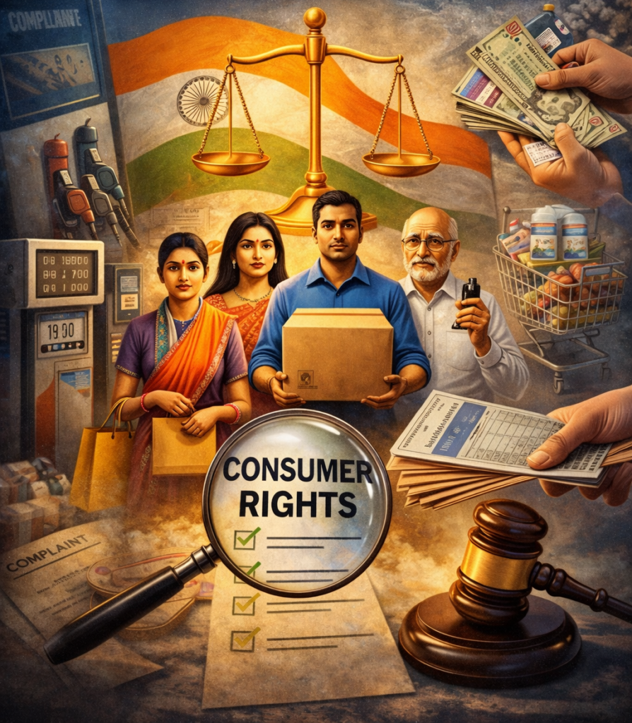 इस कानून में उपभोक्ता कौन है परिभाषित है। उपभोक्ता में वस्तुओं तथा सेवाओं, दोनों के उपभोक्ता सम्मिलित हैं। वस्तुओं के संबंध में उपभोक्ता से तात्पर्य ऐसे व्यक्ति से है, जो प्रतिफल का भुगतान करके या उसको भुगतान का वचन देकर माल कम या गलत देता /करता है तो यह अधिनियम सेवाओं के उपभोक्ताओं को भी संरक्षण प्रदान करता है। सेवाओं के मामले में उपभोक्ता से तात्पर्य ऐसे व्यक्ति से है, जो प्रतिफल का भुगतान करके या उसके भुगतान का वचन देकर या उसका आंशिक भुगतान करके अथवा आंशिक भुगतान का वचन देकर किसी सेवा को किराये से लेता है। इस प्रकार इस अधिनियम की सीमा में वे सभी वस्तु और सेवाएं आती है जिनसे उपभोक्ता सीधे तौर पर जुड़ा हुआ हैं।