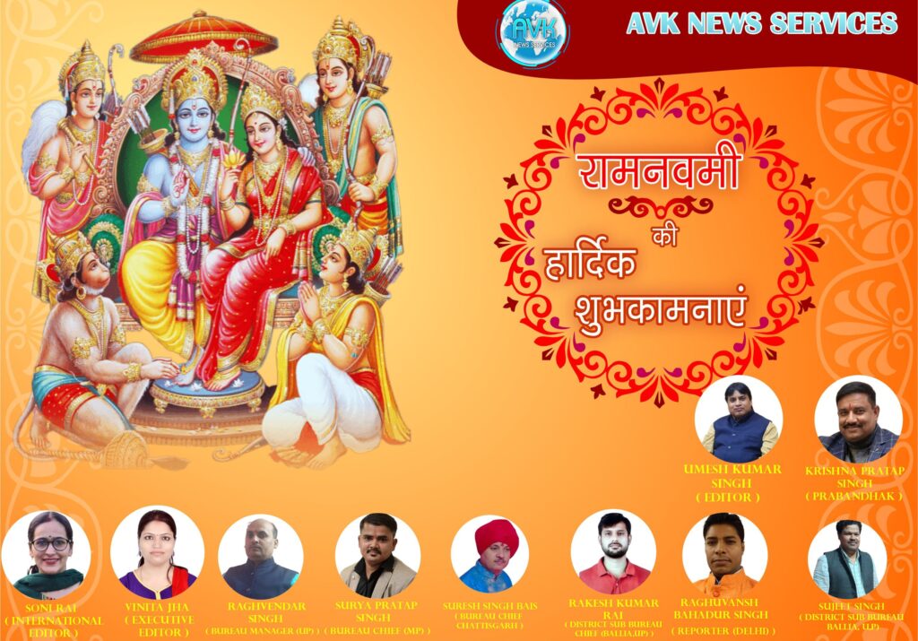 रामनवमी के पावन और पवित्र अवसर पर आप सभी देशवासियों को एवीके न्यूज सर्विस परिवार की ओर से हार्दिक शुभकामनाएं। यह शुभ दिन मर्यादा, सत्य, त्याग और धर्म के प्रतीक मर्यादा पुरुषोत्तम प्रभु श्रीराम के अवतरण का स्मरण कराता है। भगवान श्रीराम का जीवन हमें सिखाता है कि विपरीत परिस्थितियों में भी धैर्य, संयम और कर्तव्य का पालन ही सच्चा धर्म है।