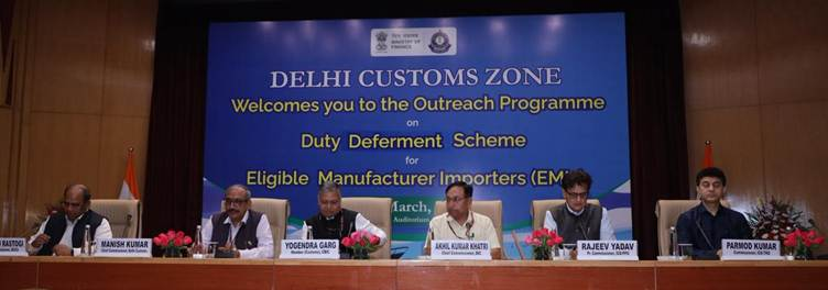 केंद्रीय बजट 2026-27 में घोषित व्यापार सुगमता उपायों को आगे बढ़ाते हुए केंद्रीय अप्रत्यक्ष कर और सीमा शुल्क बोर्ड (सीबीआईसी) ने नई दिल्ली में पात्र उत्पादक आयातकों (Eligible Manufacturer Importers – EMI) के लिए ड्यूटी डेफरमेंट स्कीम पर एक महत्वपूर्ण हाइब्रिड आउटरीच कार्यक्रम का आयोजन किया। इस कार्यक्रम का उद्देश्य उद्योग जगत और व्यापारिक हितधारकों को योजना की कार्यप्रणाली, लाभों और अनुपालन ढांचे के बारे में विस्तृत जानकारी प्रदान करना था।
