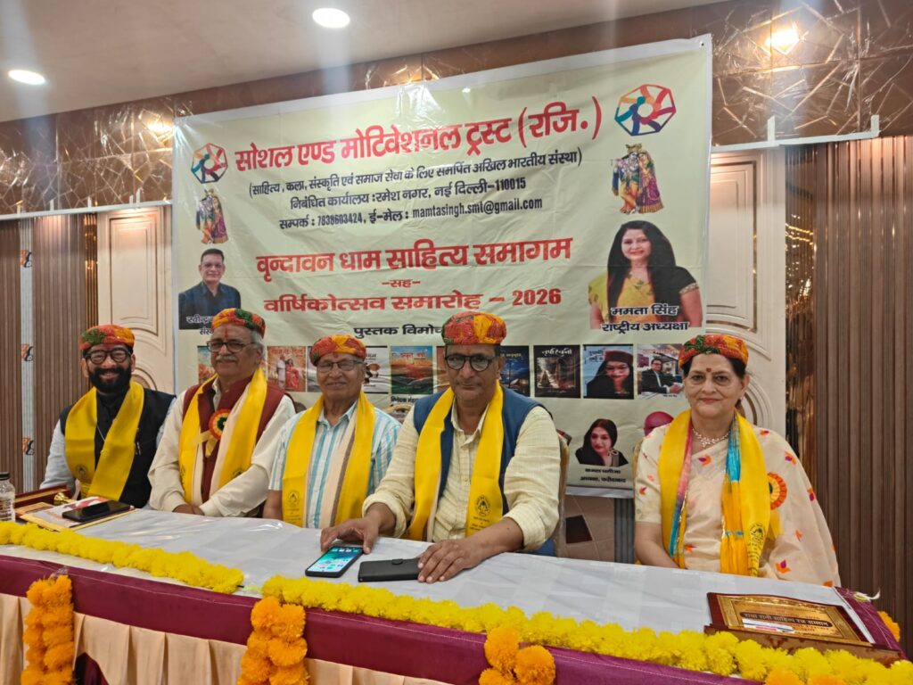 सोशल एंड मोटिवेशनल ट्रस्ट के उपरोक्त आयोजन से वृंदावन की पावन धरती कवियों के काव्य समागम से कृष्णमय हो गई। कार्यक्रम का आरंभ आरंभ पूर्व निर्धारित समय से हुआ। संस्था के संस्थापक रवीन्द्र नाथ सिंह एवं राष्ट्रीय अध्यक्षा ममता सिंह के साथ प्रथम सत्र में मंचासीन सम्मानित अतिथियों, प्रमिला भारती, जय सिंह आर्य, डा. प्रीता पवार, राजपाल यादव, अनिल प्रसाद, धर्मदेव यादव धर्मेश, इंद्रजीत तिवारी निर्भिक, उर्मिला मिश्रा एवं राकेश सक्सेना शम्श द्वारा दीप प्रज्वलन के पश्चात अर्चना झा अन्नू के सरस्वती वन्दना से कार्यक्रम की शुरुआत हुई। अर्चना झा अन्नू,ममता झा, ममता ठाकुर और अनिता निधि द्वारा संस्था गान की प्रस्तुति भी अत्यंत सराहनीय रही। द्वितीय सत्र में विशिष्ट अतिथि पूर्व स्पेशल ज्यूडिशियल मजिस्ट्रेट, मित्र संगम काव्य मंच नई दिल्ली के अध्यक्ष ओम सपरा, पत्रकार, डॉ. आलोक सक्सेना, आर्टिस्ट एवं जूम मीडिया चैनल के संचालक प्रदीप कुमार आर्यन, डॉ. अदिति सक्सेना, प्रतिभा सपरा, अनिल मासूम आदि लगभग 20 विशेष अतिथियों को सम्मान प्रतीक, सर पर वृंदावन की पारंपरिक टोपी और अंगवस्त्र प्रदान कर सम्मानित किया गया।