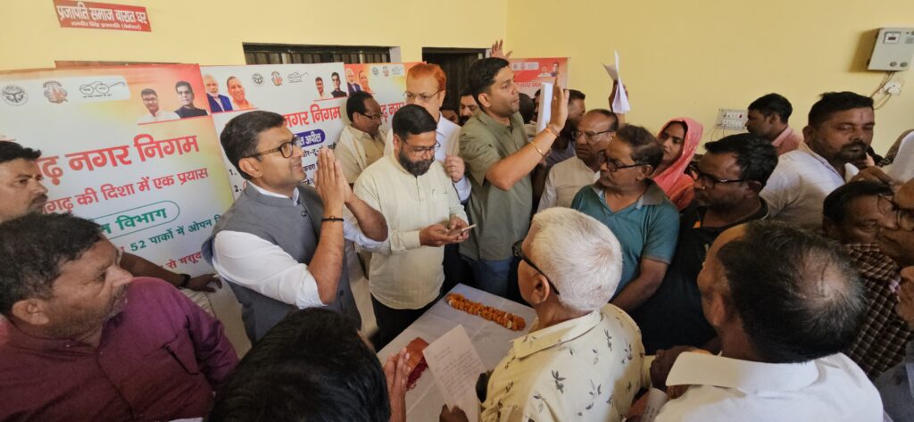 महापौर प्रशान्त सिंघल व नगर आयुक्त प्रेम प्रकाश मीणा द्वारा नागरिकों की समस्याओं के त्वरित निस्तारण एवं नगर निगम-जनता के बीच सीधे संवाद को मज़बूत बनाने के उद्देश्य से “महापौर आपके द्वार” अभियान के अंतर्गत शुक्रवार को वार्ड 17 नोरंगाबाद छावनी में शिव मंदिर व वार्ड 22 डोरी नगर स्थित प्रजापति धर्मशाला में महापौर प्रशान्त सिंघल ने स्थानीय पार्षदो/नामित पार्षदो के साथ जनता की जनहित समस्याओं के निदान के लिए चौपाल लगाकर समस्याओं को सुना। कार्यक्रम में महापौर ने समस्याओं को लेकर आये फरियादियों से वादा किया कि उनकी समस्या मेरी समस्या है शहर के विकास व बदलाव के लिए मुझे हर वार्ड के नागरिक के सहयोग की जरूरत है।