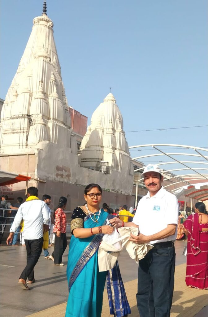 श्री काशी विश्वनाथ धाम में जहां पुण्य और भक्ति का माहौल रहा। वहीं नमामि गंगे ने इस अवसर को पर्यावरण संरक्षण और स्वच्छता के संदेश के रूप में विस्तारित करते हुए लोगों को सिंगल यूज पॉलिथीन का उपयोग न करने के लिए जागरूक किया। श्री काशी विश्वनाथ धाम परिसर में सोमवार को हजारों श्रद्धालुओं के बीच विशेष पर्यावरण संरक्षण अभियान के तहत कपड़े के झोले वितरित किए गए जिसमें श्रद्धालुओं ने बढ़-चढ़कर भाग लिया। इस अवसर पर नमामि गंगे काशी क्षेत्र के संयोजक एवं नगर निगम वाराणसी के स्वच्छता ब्रांड एम्बेसडर राजेश शुक्ला ने श्रद्धालुओं एवं पर्यटकों के साथ स्वच्छता संदेश देकर कपड़े के झोले हाथों में लेकर लेकर जनजागरूकता पदयात्रा निकाली। “स्वच्छता अपनाओ, बीमारी भगाओ”, “पॉलिथीन हटाओ, पर्यावरण बचाओ”, जैसे नारों के साथ लोगों को जागरूक किया गया। राजेश शुक्ला ने कहा कि स्वच्छता केवल व्यक्तिगत स्तर पर सीमित नहीं रहनी चाहिए, यह हमारी सामाजिक और नैतिक जिम्मेदारी है।