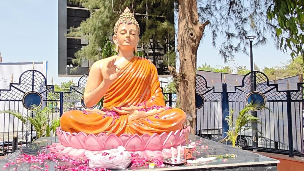 - भगवान महात्मा बुद्ध की भव्य प्रतिमा, जो शांति करुणा और मानवता का संदेश देती है।