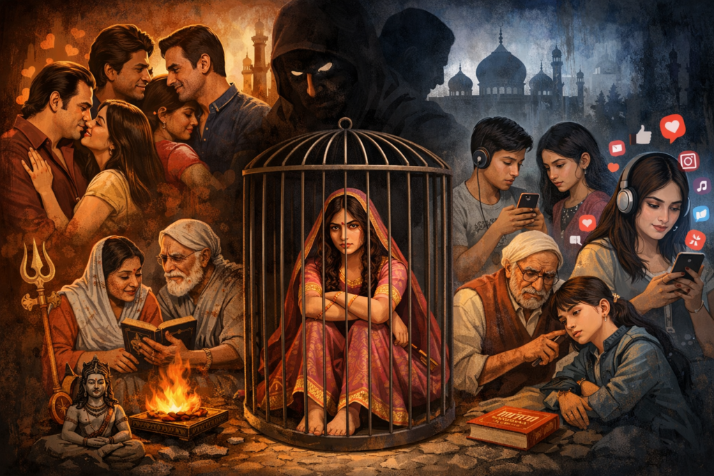 इन कलाकारों को परदे पर अत्यंत ‘चॉकलेटी’ और रोमांटिक प्रेमी के रूप में प्रस्तुत किया गया। इसके विपरीत, अजय देवगन और अक्षय कुमार जैसे कलाकारों की छवि केवल मारधाड़ और ‘एक्शन हीरो’ तक सीमित कर दी गई। परिणाम स्वरूप, युवा मन में यह धारणा घर कर गई कि वे कलाकार अधिक संवेदनशील और प्रेम करने वाले हैं। फिल्मों के इसी काल्पनिक चित्रण का सहारा लेकर वास्तविक जीवन में भी ‘प्रेम’ को एक जाल की तरह बिछाया गया, जिसमें युवतियां सरलता से उलझती चली गईं।
