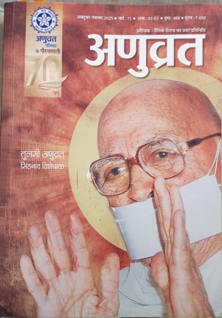 ‘अणुव्रत’ पत्रिका का अक्टूबर–नवंबर, 2025 का अंक ‘तुलसी सिंहनाद विशेषांक के रूप में प्रकाशित किया गया है। 486 पृष्ठों के विस्तृत कलेवर में प्रकाशित यह एक साहित्यिक अंक नहीं, बल्कि एक सशक्त नैतिक दस्तावेज के रूप में सामने आता है। संपादक संचय जैन और सह-संपादक मोहन मंगलम के कुशल संपादन में प्रकाशित यह विशेषांक अणुव्रत विश्व भारती सोसायटी (अणुविभा), राजसमंद द्वारा प्रकाशित होकर अपने उद्देश्य, दृष्टि और सामग्री की व्यापकता के कारण विशेष रूप से उल्लेखनीय बन पड़ा है। चार सौ रुपये मूल्य का यह अंक अपने विषय-विन्यास और वैचारिक समृद्धि के कारण संग्रहणीय और अध्ययन योग्य है।